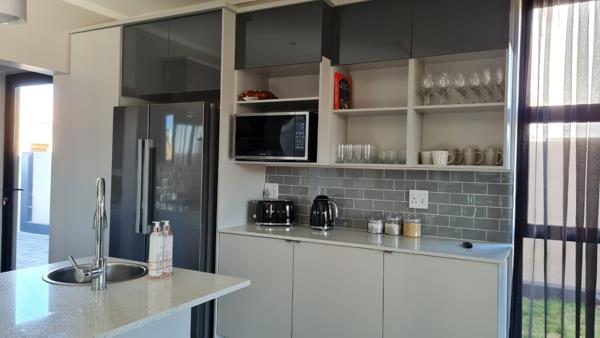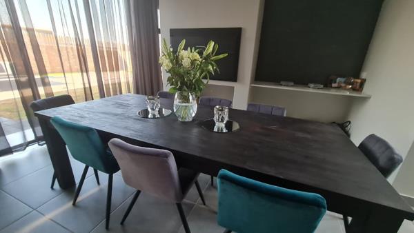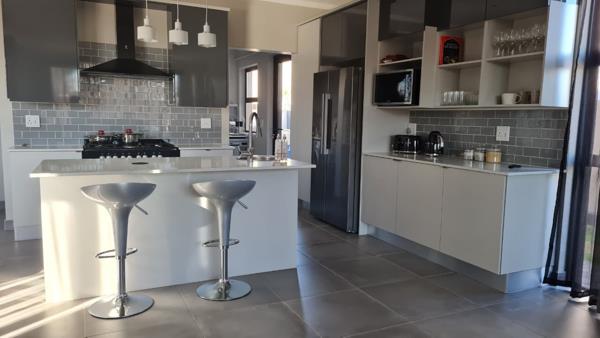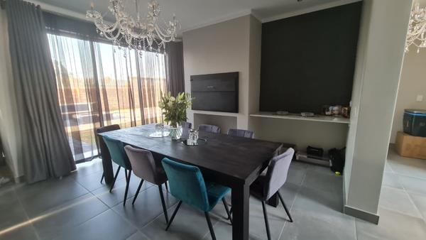This home opens into a bright and spacious living area, seamlessly combining the kitchen, dining room and lounge. The patio features a built-in braai and overlooks the pool, landscaped garden, and a BOMA with built-in seating. With ample space in the garden, you can easily add more amenities to suit your lifestyle.