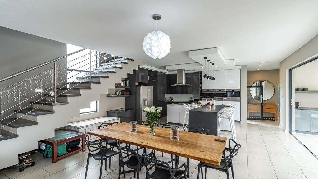 The outdoor patio and sparkling swimming pool create a vibrant hub for entertaining, complemented by ample garage space and includes a versatile 1 bedroomed flatlet for guests or extended family. Eco-conscious features, including a full inverter system and heat pump, ensure year-round comfort and efficiency.
