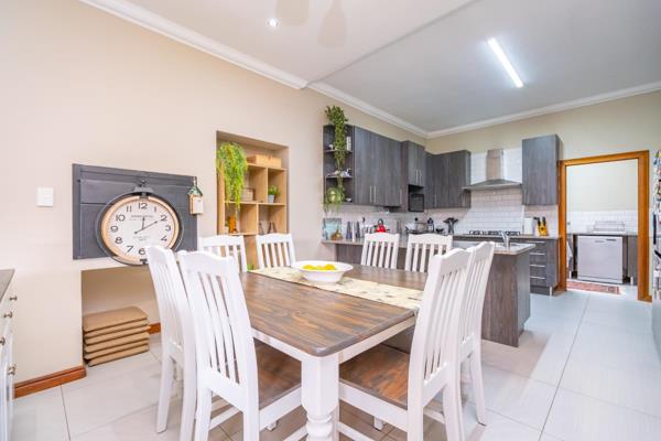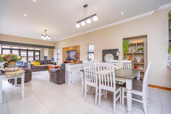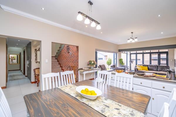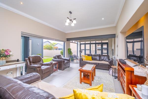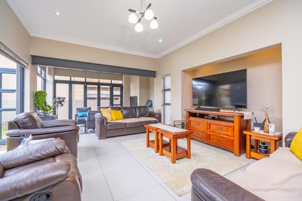 Discover contemporary living at its finest with this modern and spacious 4-bedroom home, ideally positioned in sought-after Midstream Ridge Estate. At ground level we find a large open plan living area consisting of a living room, dining room, kitchen , connecting to 3 bedrooms, 3 bathrooms and a study. The living room area extends into an enclosed braai room and opens up outside the modern kitchen with a breakfast counter, plenty of granite counter top space, lots of cupboards, a gas stove, extractor fan and the adjacent scullerylaundry. Outside the scullery we find a staff room with its own bathroom. Upstairs is a luxurious large and spacious master bedroom with AC, balcony, open rafter ceiling, walk in closets and a full ensuite bathroom. Solar back up power installed with 8KVA batteries, inverter and 14 solar panels. Double garage and parking space in front. Trailer gate access to the side of the house. Nice, low maintenance garden with irrigation.
