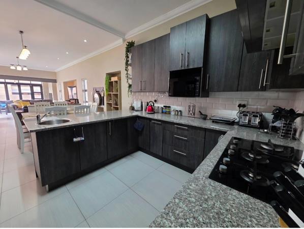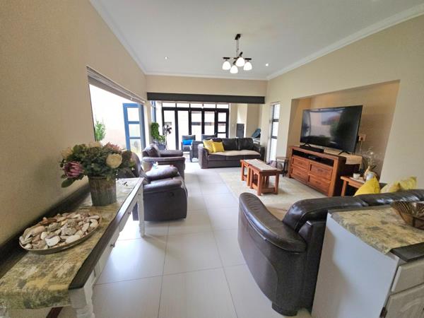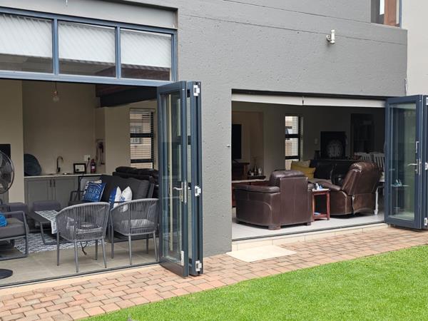 Hey there! Check out this awesome family home in the sought-after Midstream Ridge Estate. It''s got a super modern look with those big bifold glass doors that just open right up, bringing the outside in. Imagine chilling on your private patio, looking out onto a neat, green lawn perfect for those sunny South African days.