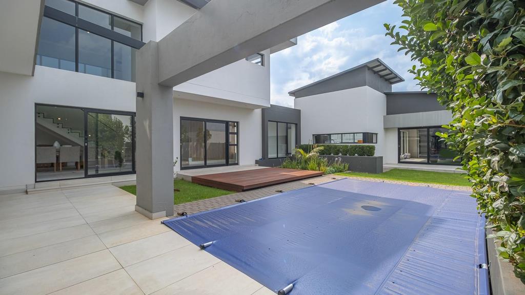 Stylish and trendy, this fantastic home is situated in the popular Midstream Ridge Estate, in a cul de sac next to the nature area. This property is built to impress! Possibility for rent as well from 1February 2026 At ground level the hallway leads to the open plan dining room, living room and kitchen. The dining room opens up to the patio and pool area, the kitchen comes with all the latest modern conveniences, center island, white caesar stone counter tops, plenty of cupboard space, gas stove and adjacent scullerylaundry with plenty of extra cupboard space. The lounge is the perfect place to relax. Adjacent to this we find the entertainment area with built in braai and stacking doors leading to the swimming pool and spacious garden. At ground level we also find a study and guest bedroom with bathroom. The upstairs features a PJ lounge, a coffee station area plus 4 bedrooms all with laminated floors.The impressive master bedroom comes with balcony, AC, trendy walk in closets and a luxurious bathroom with bath, double shower and double sink. The 3 other bathrooms are all spacious with ensuite bathrooms, AC and blinds. The property comes with a staff room with ensuite bathroom, 2 double garages and plenty of parking space. Contact me to arrange a viewing appointment.