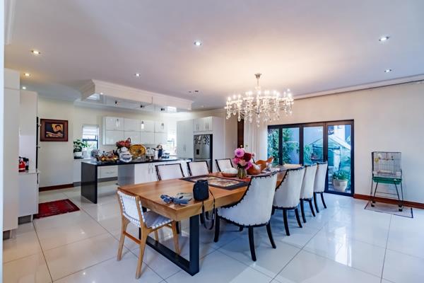 Set within the prestigious Midstream Ridge Estate, this exceptional family home has been thoughtfully designed for comfortable living, effortless entertaining, and creating lifelong memories. From the moment you step inside, you are welcomed by expansive open-plan living areas that flow seamlessly together, allowing the whole family to stay connected while still enjoying generous space. The grand kitchen truly forms the heart of the home beautifully appointed and perfectly positioned for a family that loves to cook and entertain. With ample workspace, quality finishes and a separate scullery, it invites everything from busy weekday breakfasts to festive holiday gatherings. The open living area extends into a separate enclosed entertainment room with a built-in braai, creating the ideal setting for year-round celebrations, relaxed weekends, and evenings spent with friends while the children play nearby.