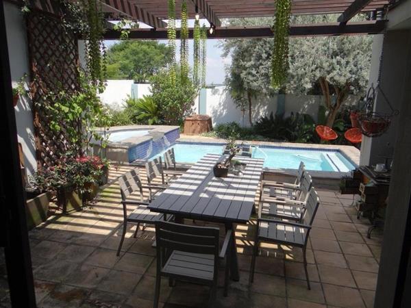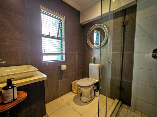 Enjoy open-plan living areas that open onto a large, enclosed patio with a built-in braai and pergola, ideal for entertaining family and friends. Step outside to the inviting swimming pool and beautifully landscaped garden.