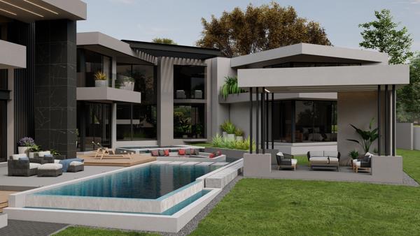 This exceptional 6-bedroom residence, each with its own luxurious en-suite bathroom, is a masterpiece of modern elegance and architectural finesse. Spanning an impressive 1300 sqm on a double stand of 2000 sqm, the home is designed for both refined living and grand-scale entertaining. Exquisite open-plan entertainment areas flow seamlessly onto a covered patio, sparkling pool, and a stylish boma perfect for hosting in any season. Sophisticated design elements, including sleek glass features, striking lighting, and clean, elegant lines, define every corner of this home. Additional highlights include a designer bar, private cinema room, staff quarters, and multiple undercover spaces that enhance the overall allure. A true statement in luxury and style.