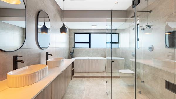 The modern kitchen is designed with an island and prep bowl that functions as a breakfast nook, a walk in pantry, and a separate scullery adds practicality. The kitchen yard is accessible from here, and the staff quarters are located at the back of the garage, complete with an ensuite bathroom.
