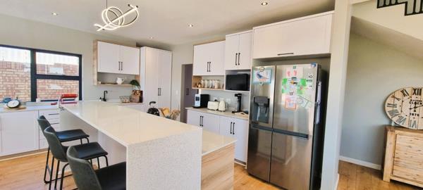 The patio is a standout feature, an entertainers zone with stack doors that open the entire living area to the outdoors. With a built-in braai, an additional serving counter, a sparkling pool and a thoughtfully landscaped garden, this is where weekends unfold naturally. The downstairs guest suite offers its own entrance, allowing absolute comfort and privacy for visitors.