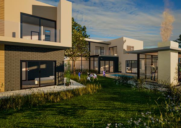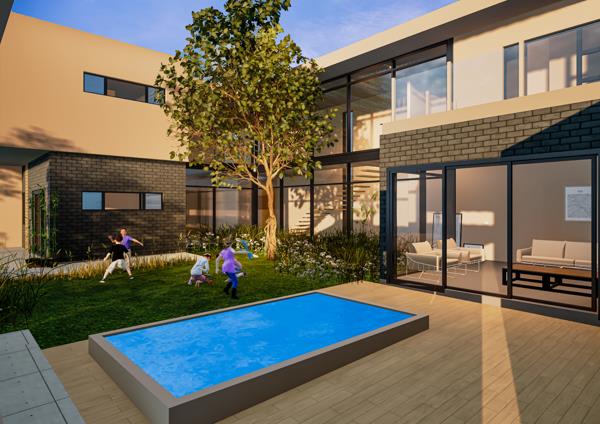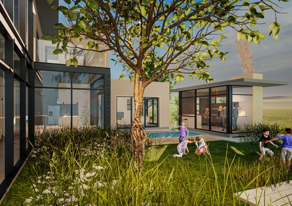 Across the pool, a dedicated entertainment area with bar creates the perfect setting for hosting, celebrating and enjoying the South African lifestyle. The sizeable garden beyond provides ample room to add future amenities such as a boma, play area, or outdoor kitchen.