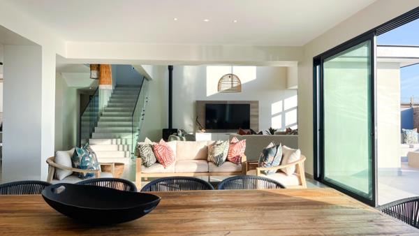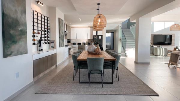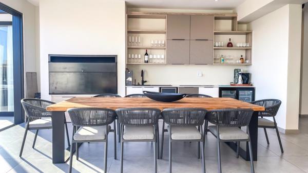 Enjoy seamless indoor-outdoor flow with a covered patio and built-in braai, overlooking a sparkling pool, boma area, and a fully landscaped garden with automated irrigation.