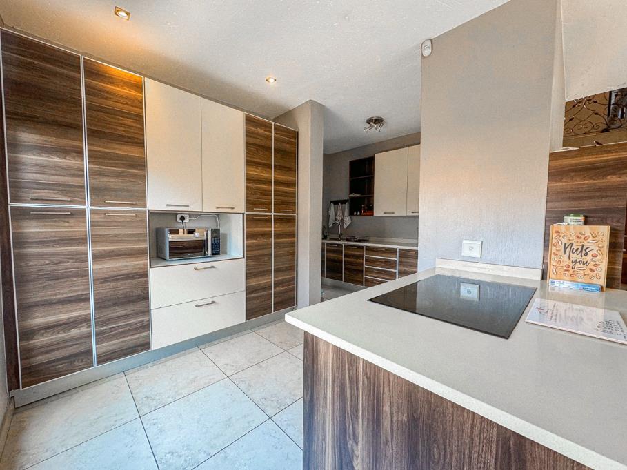 Nestled in the charming Pierre Van Ryneveld. This meticulously crafted property offers a seamless blend of luxury and functionality, promising an unparalleled living experience. As you step into the inviting entrance hall, you are greeted by a sense of warmth and elegance, complemented by a convenient guest bathroom for your visitors'' comfort. The pathway leads effortlessly to two single automated garages, ensuring convenience and security for your vehicles. The heart of the home unfolds into a captivating open-plan kitchen and dining area, seamlessly flowing into a spacious lounge adorned with natural light and access to a covered patio. The kitchen boasts ample cupboard and counter space, making it a haven for culinary enthusiasts, while a dedicated scullery simplifies your daily chores and accommodates your appliances with ease. Adjacent to the scullery is a single bedroom with bathroom staff accommodation.