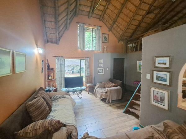You will feel as if you are on permanent vacation in this quaint double volume thatch cottage! Nestled in an established picturesque garden, this family home features the following: