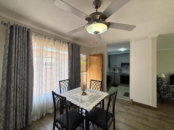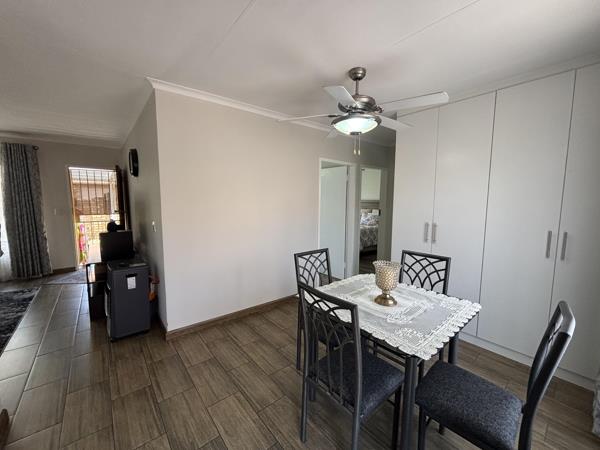 Boasting 2 North facing bedrooms and a full bathroom. The house is fully tiled throughout for easy upkeep. Open-plan living and dining room. The dining room has extra cupboard space. The louvre patio with built-in braai is ideal for relaxed entertaining. A charming manageable garden adds a touch of green an privacy.