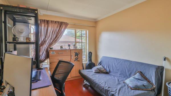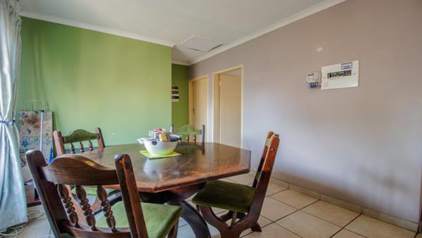 Beginners Simplex with Solar & Private Garden. This beautiful unit is situated in a neat face-brick complex and offers excellent value for first-time buyers or investors. The home features two very spacious bedrooms with warm laminate flooring and melamine built-in cupboards. The master bedroom is generously sized with ample cupboard space. There is one full tiled bathroom fitted with both a bath and shower. The unit offers separate tiled living and dining areas, as well as a functional kitchen with a fully electric oven and stove, plus space for two appliances. Outside, you will find a large private walled garden, one manual garage and one open parking.