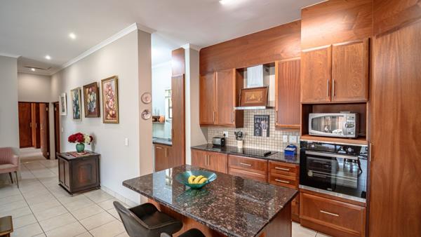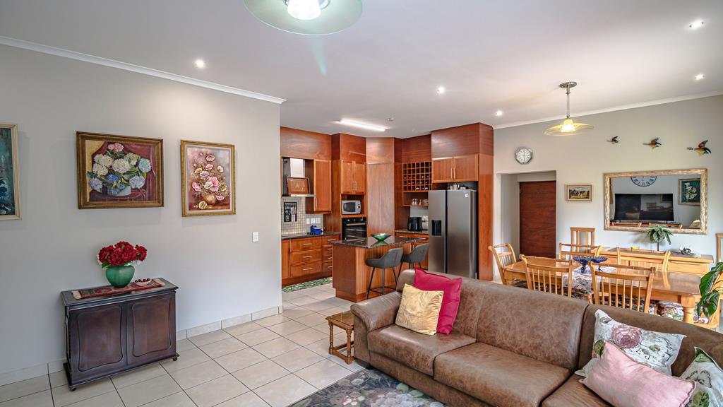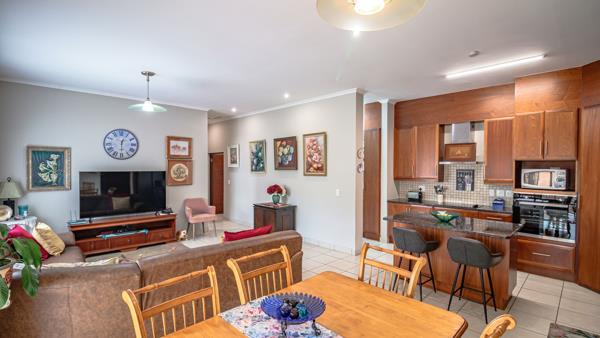 This spacious open plan home has a lovely garden, a covered patio with built-in braai and stacking doors, entrance hall, 2 garage with direct access into the unit. Open plan kitchen with breakfast nook, separate scullery and a study, 2 bedrooms and 2 bathrooms. Main bedroom has an en-suite with bath and shower.