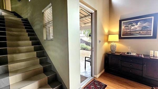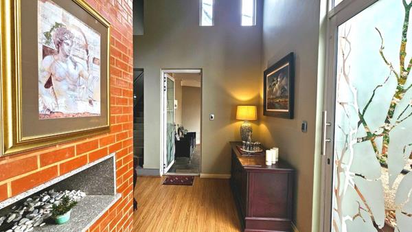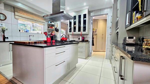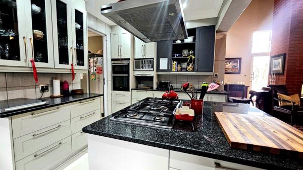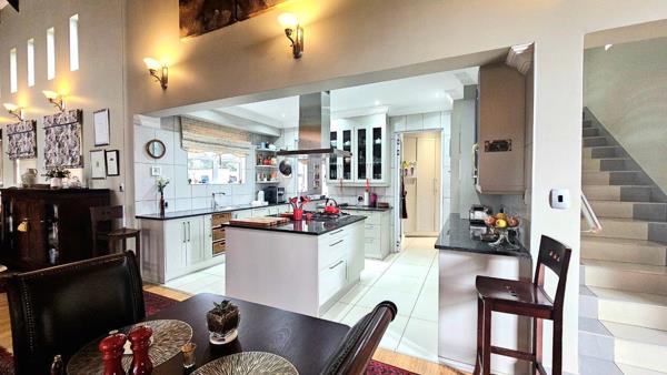 When entering the property you are greeted with a water wise Cactus garden , the street view will leave you in awe! The entrance hall is located for privacy, as you make your way to the living rooms, your eyes are drawn to the double volume living rooms with exposed trusses , focal lighting is meticulously positioned to draw your attention. The kitchen is well designed with light cabinetry and various built-in fittings , the big centre island has an extended granite top which serves as a lovely serving area. The entertainment patio which flows directly from the dining room is very spacious and offers stacker doors on either sides, taking you to pause areas for your enjoyment.