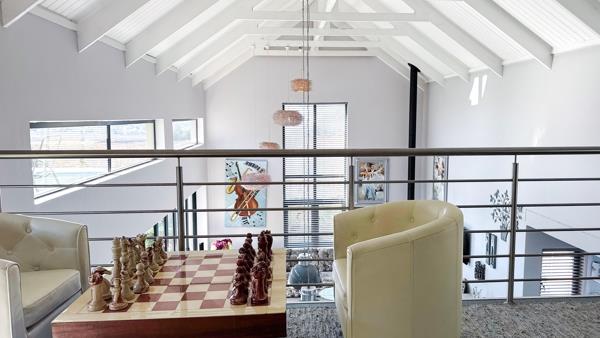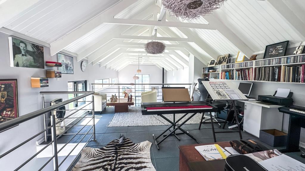 The homes soaring double-volume ceilings invite abundant natural light, enhancing the sense of openness and airy comfort.The property includes a delightful studio, perfect for unwinding even as a private pyjama lounge.