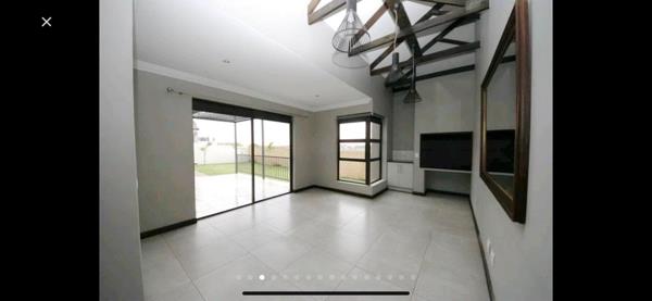 Step inside to a spacious entrance hall, leading through to the expansive open-plan living area, characterized by impressive high vaulted ceilings with exposed dark wooden beams and modern pendant lighting. This versatile space seamlessly integrates a spacious lounge, a dining area, and a state-of-the-art kitchen. The kitchen is a chef''s delight, equipped with sleek white cabinetry, dark granite-look countertops, and a central island. Your braai room is enclosed and has a built in braai. Sliding doors leads out to your covered patio with views across your private garden.
