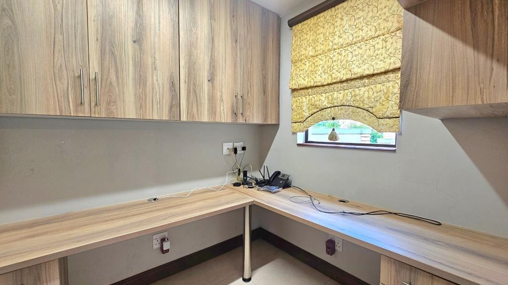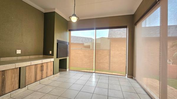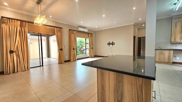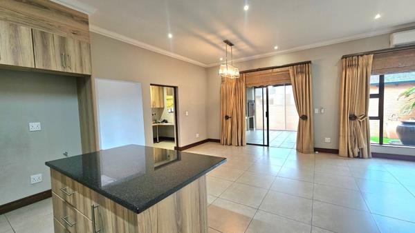 188m² Single level home offering 2 spacious LIVING ROOMS, STUDY WITH BUILT-INS, and UNDERCOVER PATIO. 2 bedrooms and 2 bathrooms . The main bedroom has a spacious full en-suite-bathroom. Spacious kitchen with ample cupboard space with a separate scullery . Lovely well-maintained garden and a DOUBLE lock-up double garage.
