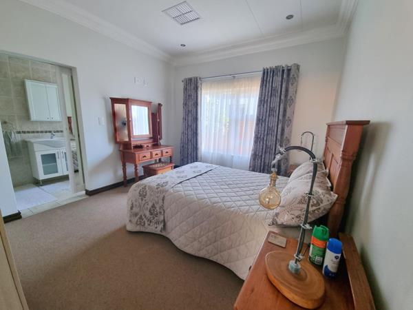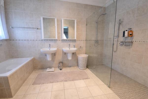 An inviting entrance, 2 spacious living areas, an eye-catching kitchen with top class finishes, an extractor fan, breakfast nook, pantry & a separate scullery, 3 beautifully bright en-suite bedrooms with ample of cupboard space, a large study with ample of cupboards & work areas, double garage with an auto door and more!