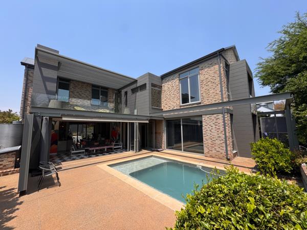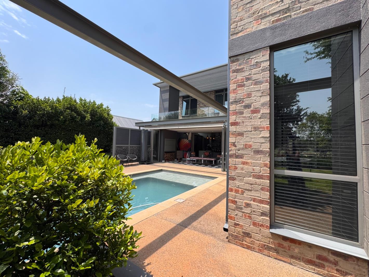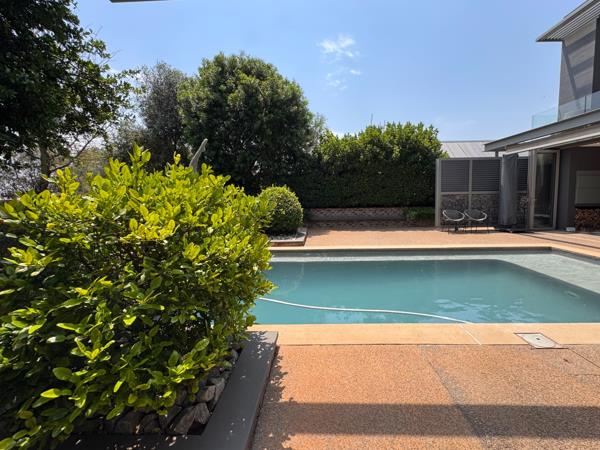 The aluminium stacking doors open up onto a wonderful pool and spectacular garden.
