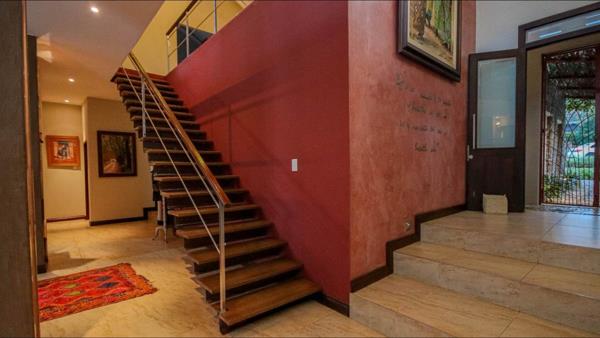 From the entertainment room and patio there is a magnificent view onto the pool area, well maintained garden and the Hennopsriver Valley. The guest room is on the ground floor level and is fitted with imported tiles from Italy. It has an en-suite bathroom. On the same floor is an underground wine cellar with ample storage space for the wine collector.