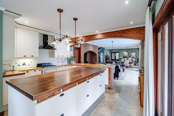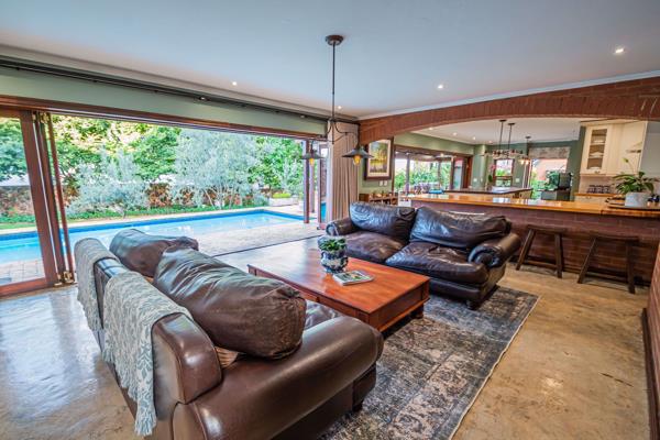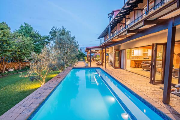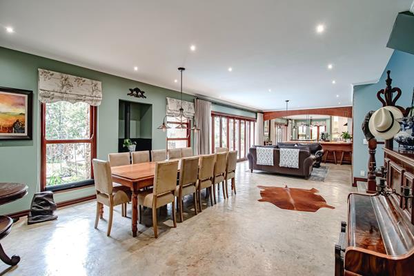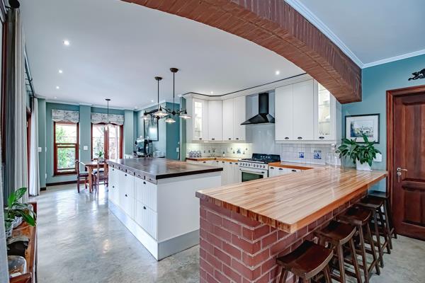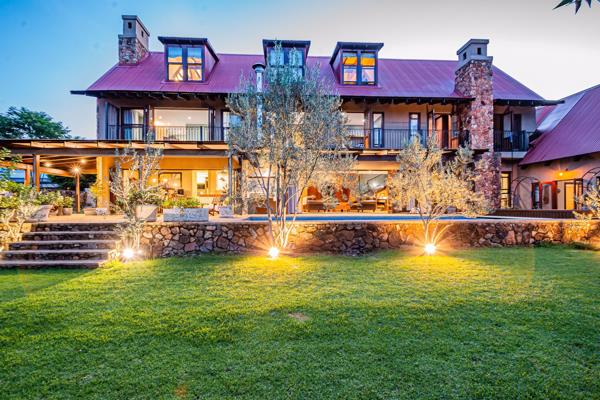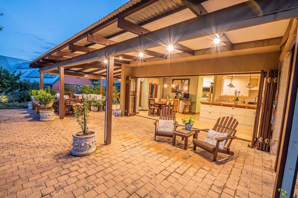 You are welcomed into the main house featuring open-plan living areas, 3 fire places a gas heater, a woodanthracite Dover stove and open fire place. The living area consists of a 12-seater dining area and a lounge area with stacking doors opening onto a heated lap pool automated pool cover operated with security pin. A 8m² wine-cellar is tucked away into this area and holds space for a dining table and accommodates more than 650 bottles of wine in it''s air-conditioned vault.