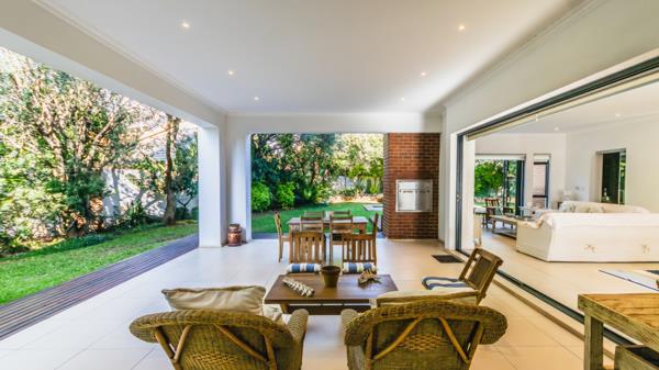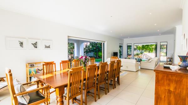 The en-suite main bedroom serves as a luxurious retreat, offering ample cupboard space and a bathroom with double basins, shower, bath, toilet, and heated towel rails.