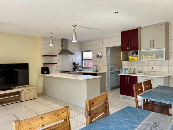 The open-plan layout seamlessly connects the lounge, kitchen, and dining area, creating a warm and inviting space perfect for both entertaining and everyday life. A beautiful fireplace in the lounge provides cozy comfort during the winter months, while the built-in braai on the covered patio invites relaxed outdoor gatherings all year round.