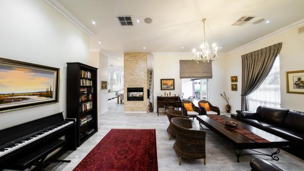 This immaculate single-storey, lock-up and go, and wheelchair friendly home, offers the perfect blend of comfort, convenience, and elegance, ideal for those seeking a low-maintenance lifestyle without compromising on space or quality. As you enter, you''re greeted by high ceilings and a formal lounge with a gas fireplace, perfect as a private TV lounge, study, or reading room. The heart of the home features a spacious open-plan family room with stack doors leading to the patio, dining area, and kitchen, anchored by a double-sided fireplace, creating a warm and inviting ambiance.
