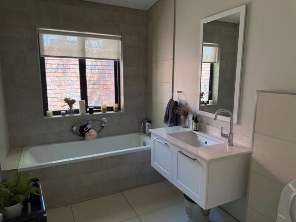 This lovely single story home offers 3 bedrooms, 3 bathrooms 2-ensuite, study nook area, open plan living area featuring a lovely kitchen separate scullery with breakfast bar, dining and loungetv area. An enclosed braai area overlooking the lovely garden offers an unique entertainment space.