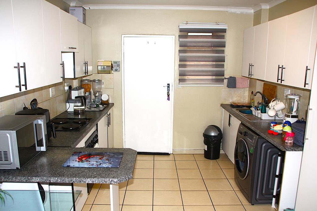Agent will contribute R1 000 towards moving-in cost. This neat and quiet, spacious 2 bedroom upper FLOOR unit, 1 bathroom, 1 garage in the popular and very well-kept Riverside Place complex in Zwartkop that is situated walking distance from Centurion Mall, McDonalds and the Gautrain bus stop. This complex is very popular with OUTSURANCE employees. If the unit is bought as an investment, the unit will never be empty because of OUTSURANCE. As you make your entrance into this delightful establishment, you''ll find a spacious, open plan kitchen that accommodates 2 appliances as well as a single fridge unit. It is also equipped with a standard size oven and 4 plate electric stove. This beautiful establishment boasts 2 bedrooms with built-in cupboards. The bathroom shared between the two bedrooms is equipped with a bathtub with a hand shower, toilet and washbasin. Make your way through the spacious open plan dining room and living room to your personal balcony with a view over the greenery that brings tranquility to your soul while you sip your G&T and watch the sunset. This building comes equipped with an elevator system making it convenient and wheelchair friendly.