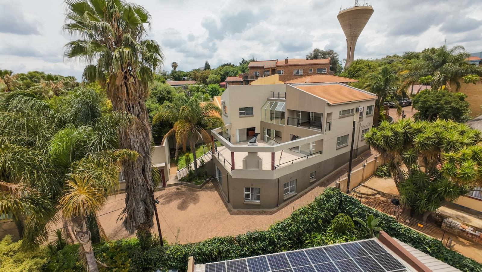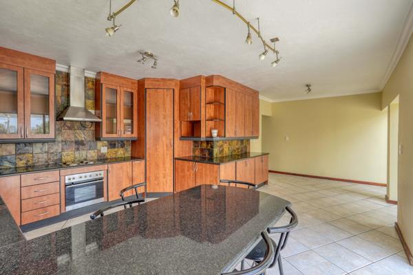 The main house unfolds across three carefully designed levels, recently renovated to ensure a fresh, move-in-ready experience. On the ground floor, the entrance hall opens into a bright lounge, a second lounge for quieter moments, and a dining room that flows out to a covered patio fitted with a built-in braai. Underfloor heating warms this entire level, creating a cosy atmosphere for winter gatherings. The kitchen sits nearby, complete with a separate scullery for effortless organisation, and a guest toilet adds convenience for visitors.
