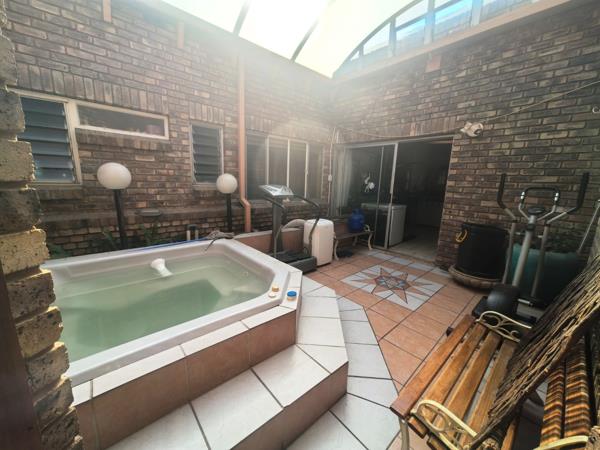 This warm and versatile property is set in a popular boomed-off area of Zwartkop, offering the perfect blend of family living and work-from-home potential. The main house features three generously sized bedrooms and two bathrooms, complemented by three spacious living areas, an open-plan kitchen with sleek granite tops, and a playroom that includes a pool table and built-in bar. The entertainment area flows out onto a private patio with a built-in braai and a relaxing Jacuzzi perfect for unwinding or hosting friends and family. Additional features include a double garage with direct access into the home and ample undercover parking provided by spacious carports.