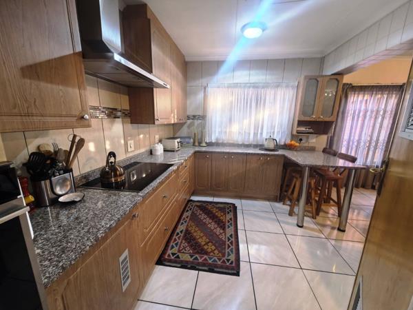 The updated, well-maintained kitchen connects easily to the living areas, creating an ideal setting for both relaxed family living and hosting guests. A spacious garden offers plenty of room for outdoor enjoyment, enhancing the homes warm and inviting atmosphere. Three garages offer exceptional parking options, with one specifically designed to accommodate a caravan due to its extra height, and providing direct access into the home for added convenience. Perfectly located close to Centurion Mall, main routes, and popular schools, this home is a rare find in a secure, family-friendly neighbourhood.