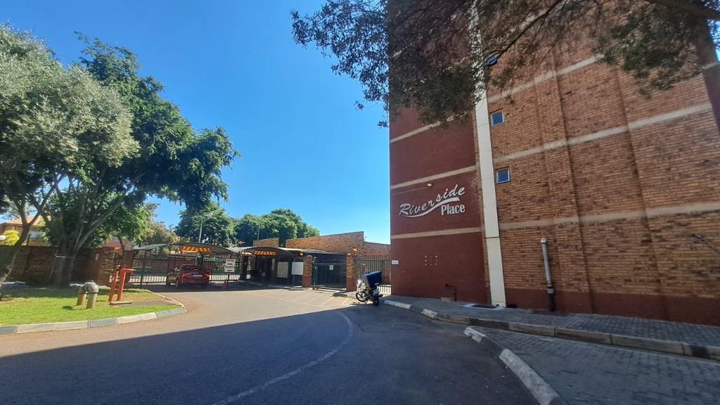The ''Riverside Place'' complex presents a well-maintained brick exterior with established trees and paved areas, offering a neat and functional environment. The gated entrance provides a clear sense of security and community.