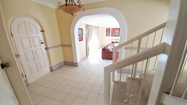 This distinguished two-story residence in Zwartkop, Centurion, presents a commanding street presence with its traditional red tiled roof, secure perimeter fencing, and a paved driveway flanked by mature trees. Upon entry, the home reveals a meticulously appointed interior featuring durable tiled flooring throughout. The ground floor encompasses an inviting entrance hall, two spacious lounges, a dedicated dining room and a stydy/office area, all benefiting from abundant natural light. A versatile multi-functional room, currently configured as a home office, offers direct outdoor access and includes a fireplace, enhancing its utility.