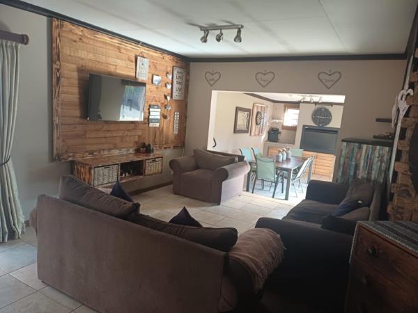 Living Areas: Lounge, Dining Room & a Familyentertaining room with a built-in Braai with a no-smoke chimney, and it has a sliding door opening up to the Garden.