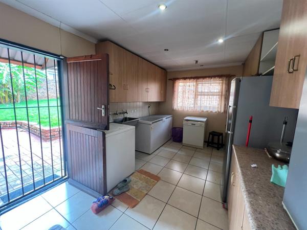 Bedrooms are generously sized with built-in cupboards, tiled floors, and air-conditioning in selected rooms. The landscaped garden includes a Wendy house and outdoor amenities, completing this impressive home located in a secure boomed-off area in Zwartkop.