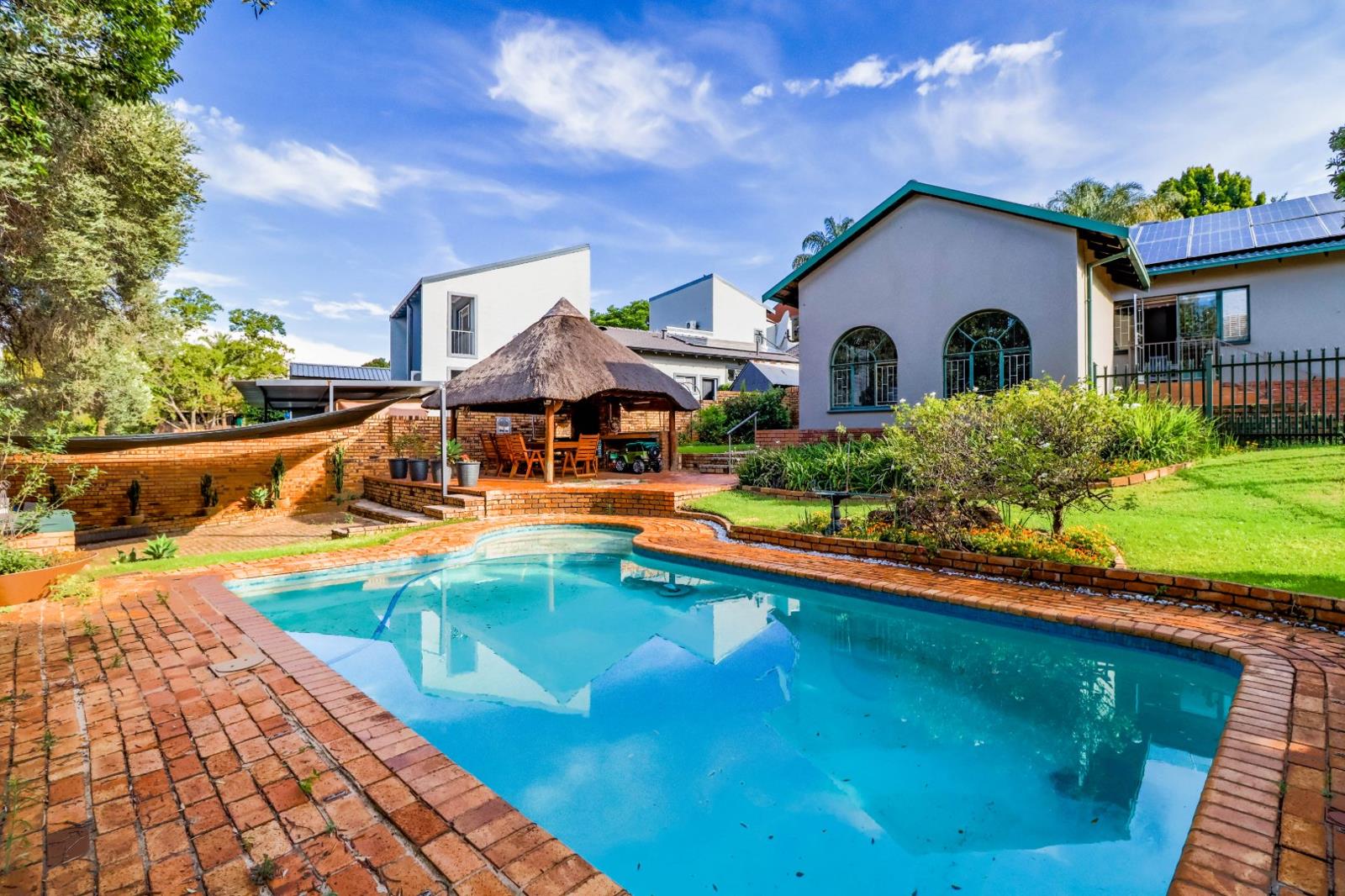 The property is equipped with 30 solar panels, 24KW Inverter 8KW per flatlet, and 30 KW Battery 10Kw per flatlet. Beautiful garden with a pool and a lapa with a built-in braai - ideal for entertainment!