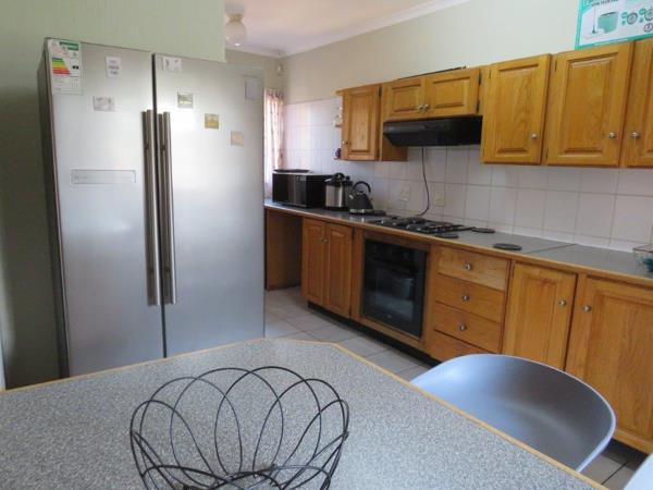 The home features 3 spacious bedrooms queen-size beds size and two bathrooms. The master bedroom with space and more for a king-sized bed, en suite bathroom with bath and shower and plenty built-in cupboards. The 2nd family bedroom ideal for work from home, opens with a door to the well-kept spacious garden.