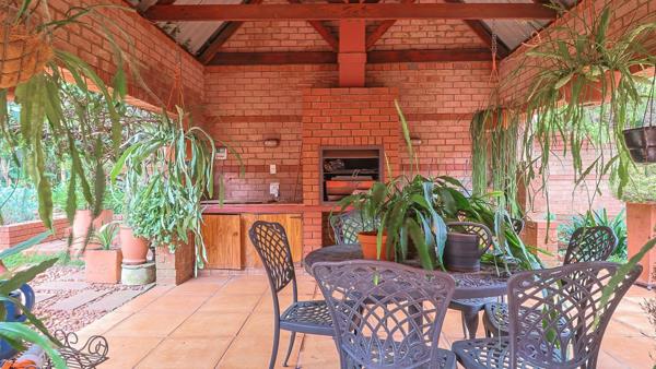 HOUSE ONE - Entrance Hall, spacious lounge with fireplace, dining room opening with sliding doors to entertainment patio and built-in braai, kitchen with separate scullerylaundry and pantry. THREE bedrooms, bathroom plus study or 4th bedroom - all with ample built-in cupboards, single, automated garage with direct entrance into entrance hall.
