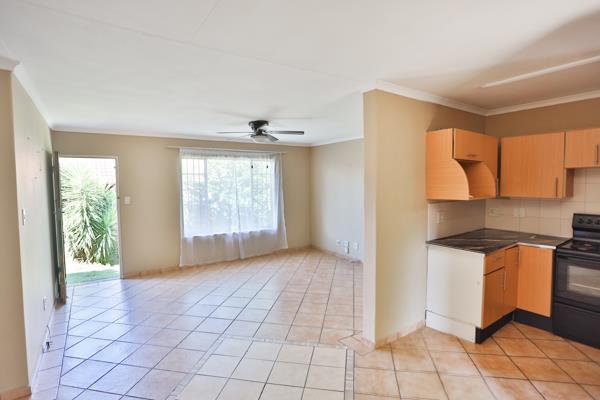 The home features a welcoming open-plan living area that flows seamlessly into the kitchen, creating a practical and easy-living space. The kitchen offers sufficient cupboard space and room for appliances, while ceiling fans throughout the home provide added comfort.