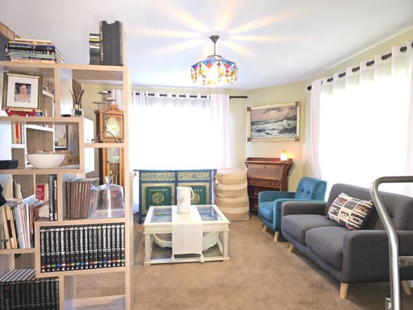 The kitchen is equipped with a gas hob, eye level oven, prep bowl with water filtration system and has teak wood cupboards. Breakfast nook with chairs is on the side of the living room.