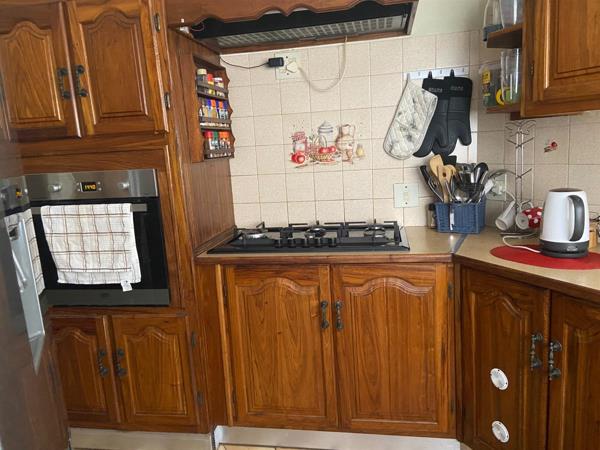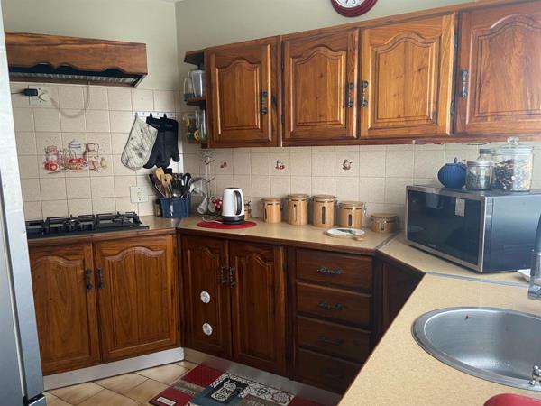 The kitchen is equipped with solid wood cupboards, five plate GAS stove and concealed scullery area. One bedroom with en-suite bathroom is located on this level.