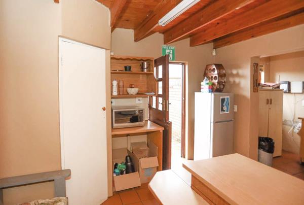 The property also includes three well-sized bedrooms or offices, all fitted with built-in cupboards currently configured for storage.