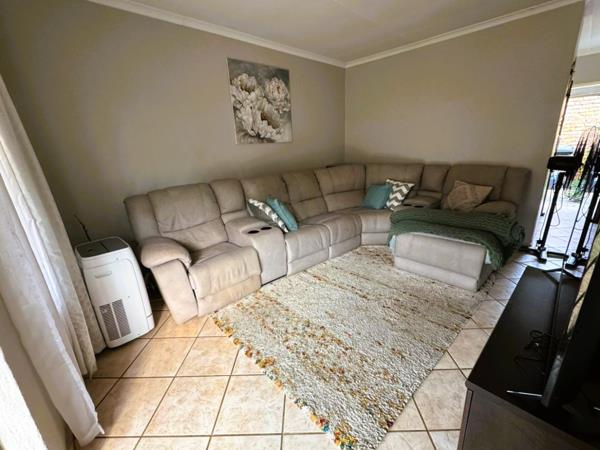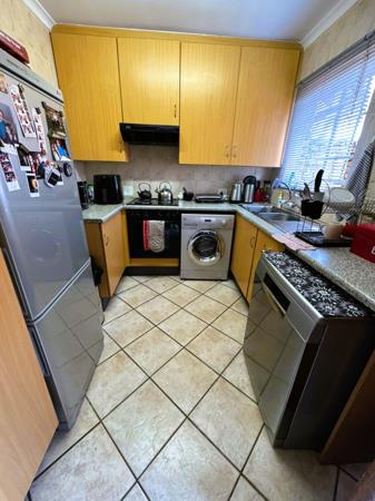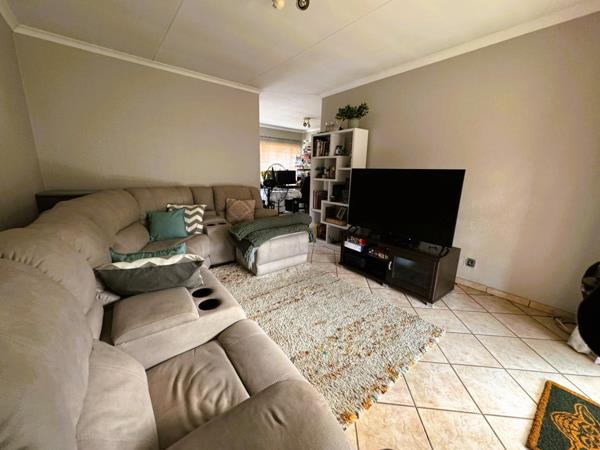 The kitchen is fitted with ample cupboard space and allows for one under-counter appliance, making it both functional and practical. The two well-sized bedrooms feature laminated flooring, while the rest of the home is finished with tiles throughout.