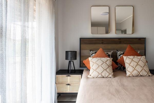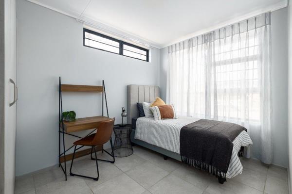 Step into a bright, open-plan living area that seamlessly connects the lounge, dining space, and a sleek, modern kitchen fitted with quality finishes and ample cupboard space. The unit features two well-sized bedrooms with built-in wardrobes and a neat, full bathroom designed for easy living.