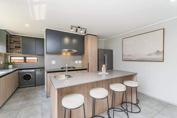 The kitchen boasts an elegant island counter with a prep bowl, and the scullery offers space for up to three appliances.