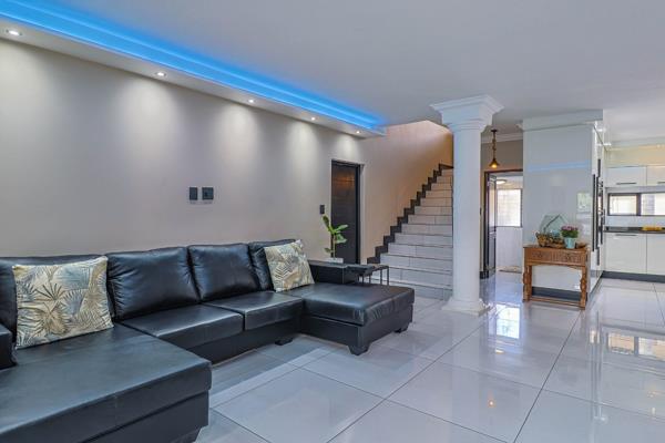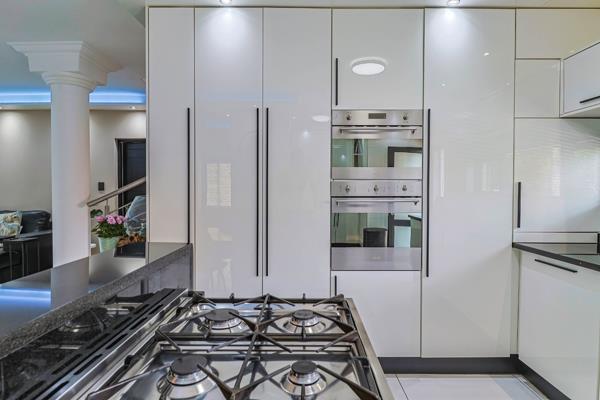 From the large open plan living area you can enter a guest bedroom4th bedroom with an bathroom, and also enter to a closed, spacious entertainment room with braai with build in bar. Stack doors can open this area to the garden. There is also a guest toilet downstairs.