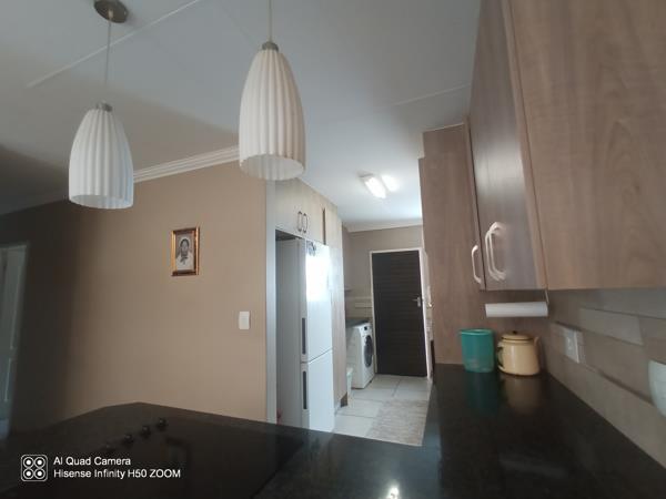 Welcome to this beautiful property offering modern conveniences and comfort in a highly desirable security estate. This spacious 3-bedroom, 2-bathroom home features a stylish open-plan lounge and dining area, perfect for family gatherings and entertaining. The well-equipped kitchen is designed for both functionality and style, making meal preparation a breeze.