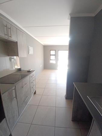 Open plan kitchen with ample cupboard space leading to spacious lounge